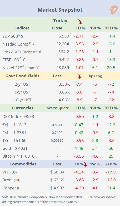 šļøš+ Market Data. Stocks, oil and cryptos plummet. Bonds rally. Risk-off Friday on Trump's new tariff threat.