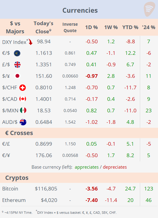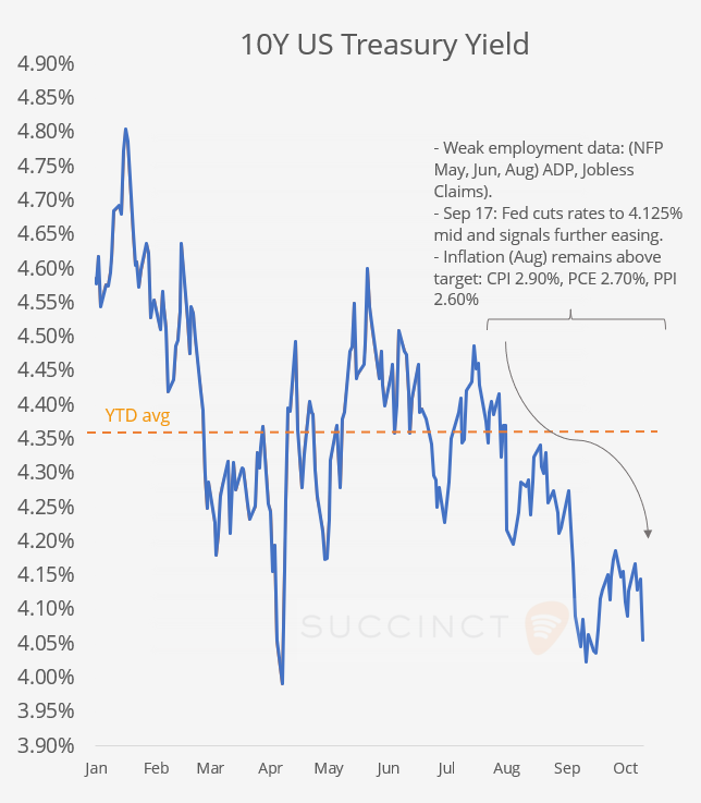 Fri 10 Oct: Market DataTables & ChartsUS Markets DailyOct 10, 2025Shareℹ️ Free subs: USMD’s subscription costs $7.50 per month with the annual plan – for now, and has a 7-day trial. Visit About to learn about the Refer & Save program and pay even less.Copyright © 2025 Succinct.PreviousNext