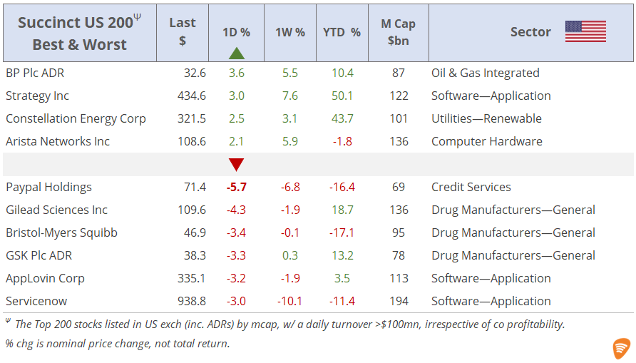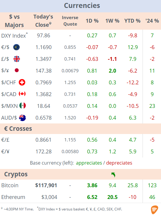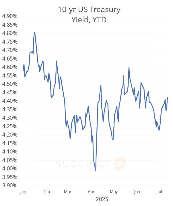 Fri 11 Jul: Market DataTables & ChartsU.S. Markets DailyJul 11, 2025ShareFree subscribers only have full access to unlocked posts.Copyright © 2025 Succinct.S&P 500®, Nasdaq 100®, Dow Jones Industrials®, FTSE®, Stoxx® and other indices are registered trademarks of their respective owners.