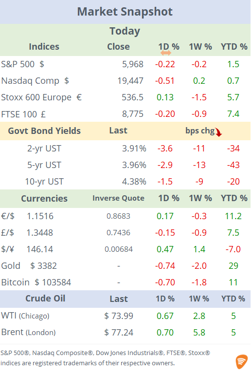 In central bank action yesterday, the Bank of England maintained its base rate steady, as expected, at 4.25% although three out of nine members of the committee opted for a 25bp cut. The BoE highlighted that the economy is showing signs of weakness and labour conditions have continued to loosen, signalling a potential rate cut at its next meeting.