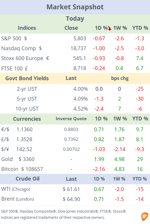 Also, Trump threatened with a 25% tariff on iPhones made outside of the US as he builds pressure on Apple to produce domestically. Apple had recently announced that iPhones sold in the US would move manufacturing from China to India. Apple shares fell 3% today and are already 22% lower this year. (Chart on Market Data post)