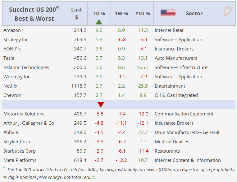 Fri 31 Oct: Market DataTables & ChartsUS Markets DailyOct 31, 2025ShareCopyright © 2025 Succinct.PreviousNext