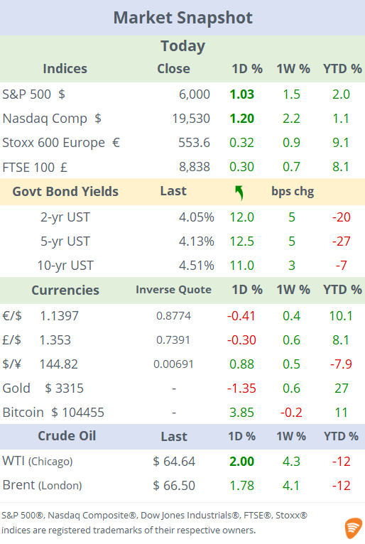 This positive data helped alleviate fears of an imminent economic slowdown after this week’s disappointing data including PMIs and the ADP jobs report. Leading US equity indices added more than 1% today to their highest level in over 3 months and the S&P 500 closed above 6,000 points. The VIX volatility index fell to 16.8%, the lowest since mid-February.