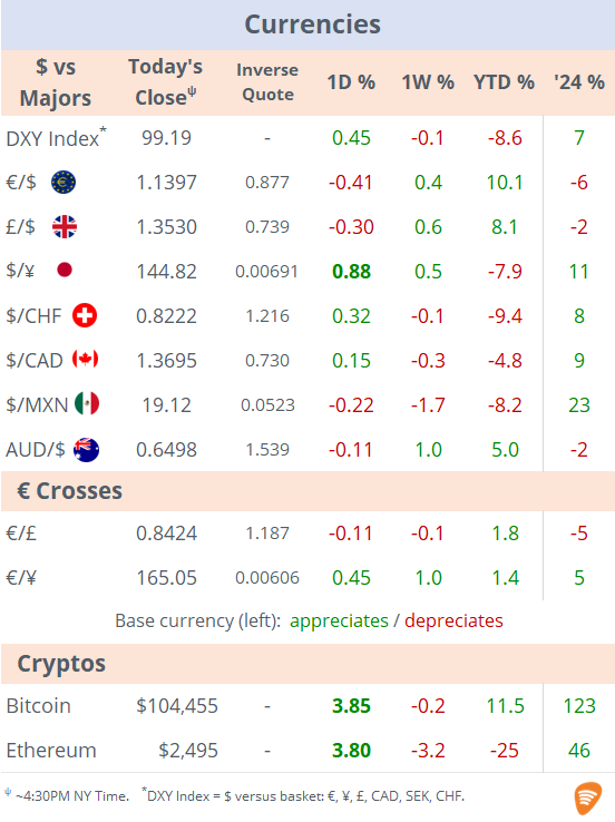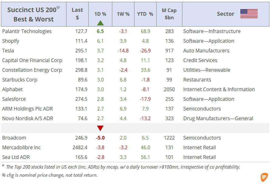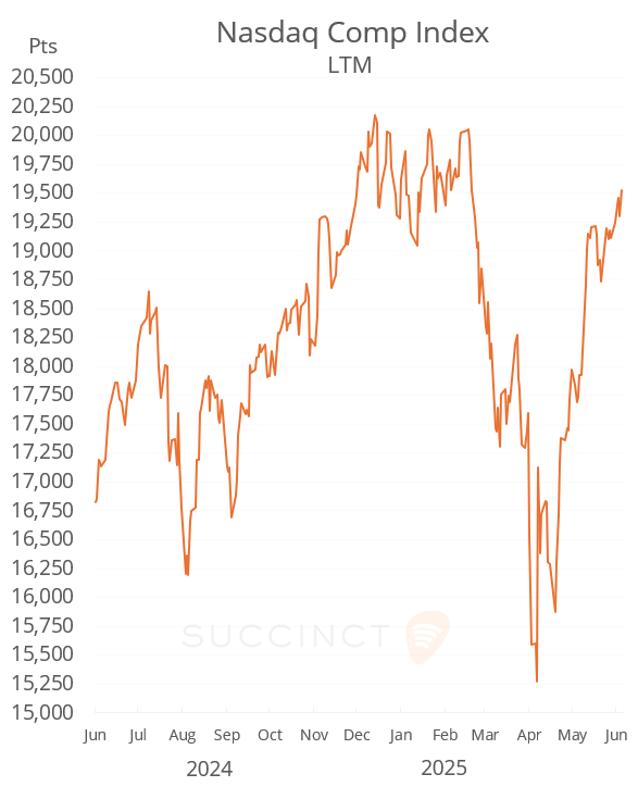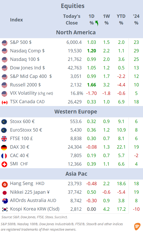 Fri 6 Jun: Market DataTables & ChartsU.S. Markets DailyJun 06, 2025ShareCopyright © 2025 Succinct.S&P 500®, Nasdaq 100®, Dow Jones Industrials®, FTSE®, Stoxx® and other indices are registered trademarks of their respective owners.