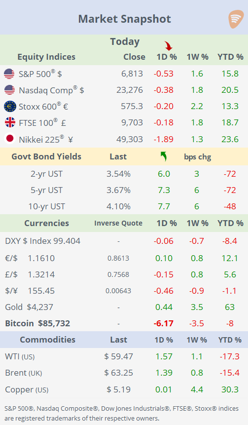 Stocks Pull Back; Crypto Sells Off as Yields Edge Higher: your 5’ evening market wrap📄📈