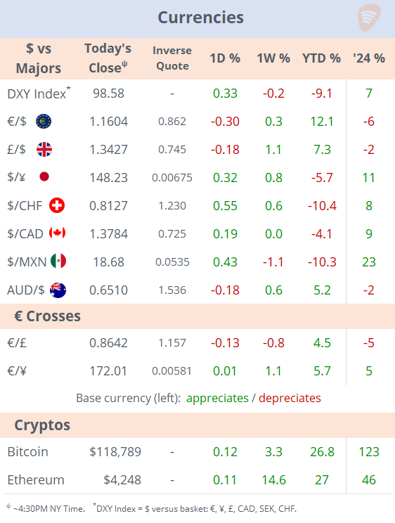 Mon 11 Aug: Market DataTables & ChartsU.S. Markets DailyAug 11, 2025Shareℹ️ Free subscribers have full access to older (unlocked) posts.Copyright © 2025 Succinct.