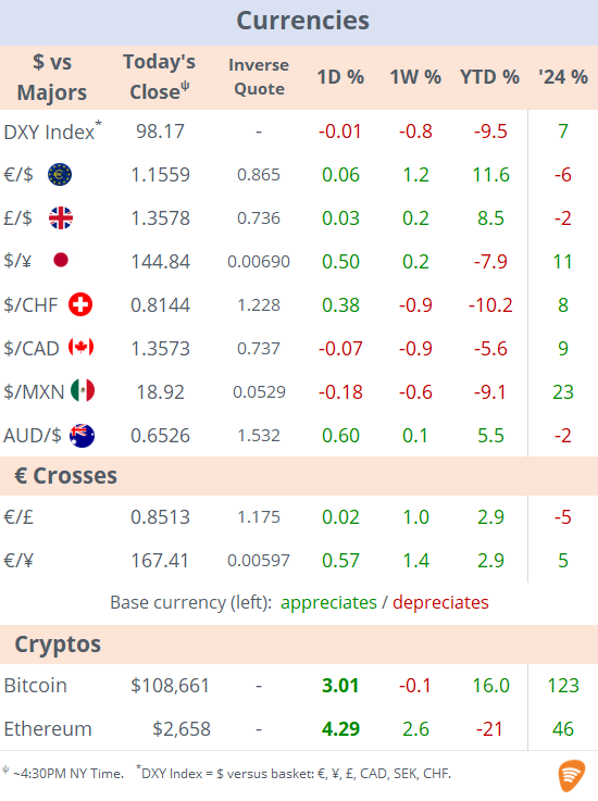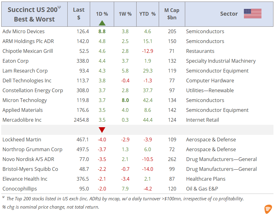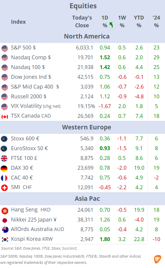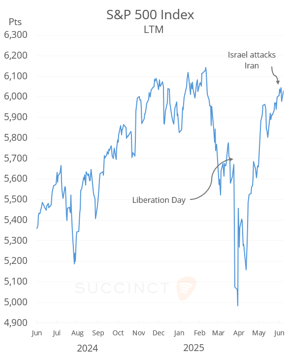 Mon 16 Jun: Market DataTables & ChartsU.S. Markets DailyJun 16, 2025ShareCopyright © 2025 Succinct.S&P 500®, Nasdaq 100®, Dow Jones Industrials®, FTSE®, Stoxx® and other indices are registered trademarks of their respective owners.