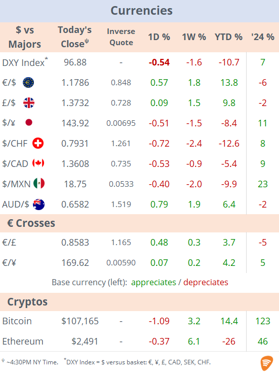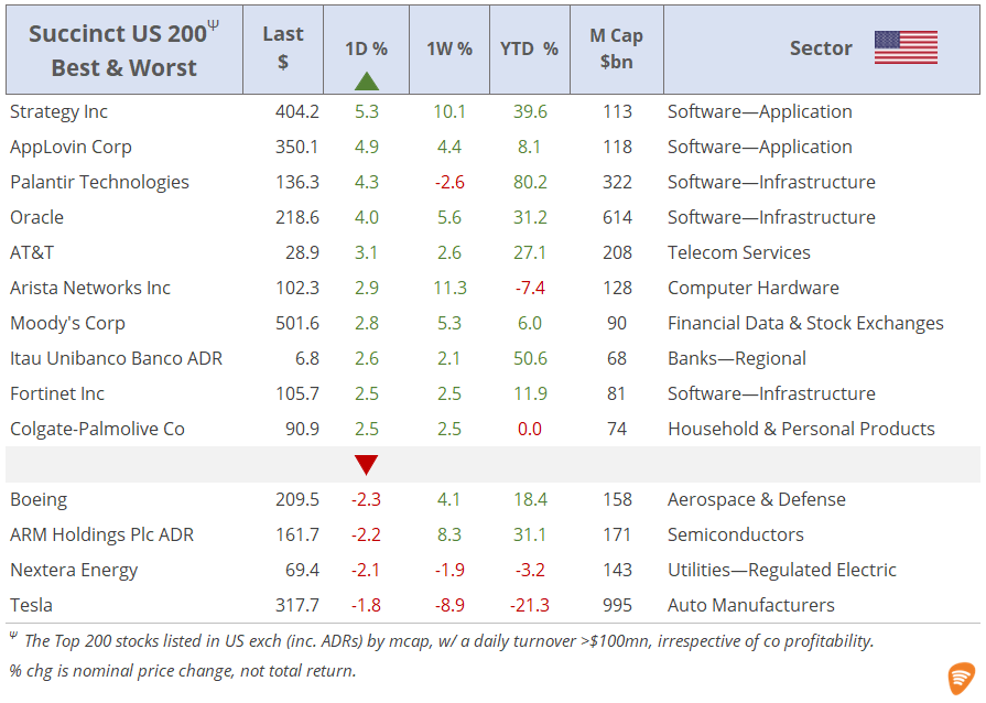 Mon 30 Jun: Market DataTables & ChartsU.S. Markets DailyJun 30, 2025ShareCopyright © 2025 Succinct.S&P 500®, Nasdaq 100®, Dow Jones Industrials®, FTSE®, Stoxx® and other indices are registered trademarks of their respective owners.