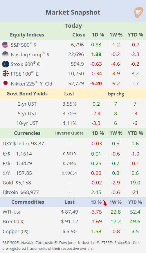Energy markets remain the central focus for investors, with concerns around shipping disruptions in the Strait of Hormuz, potential supply losses across Gulf producers and the broader inflation impact of higher oil prices dominating sentiment. The sudden spike in crude has quickly altered the macro-outlook, complicating the Fed’s policy calculus, as sustained energy shocks could simultaneously push inflation higher while weighing on global growth.