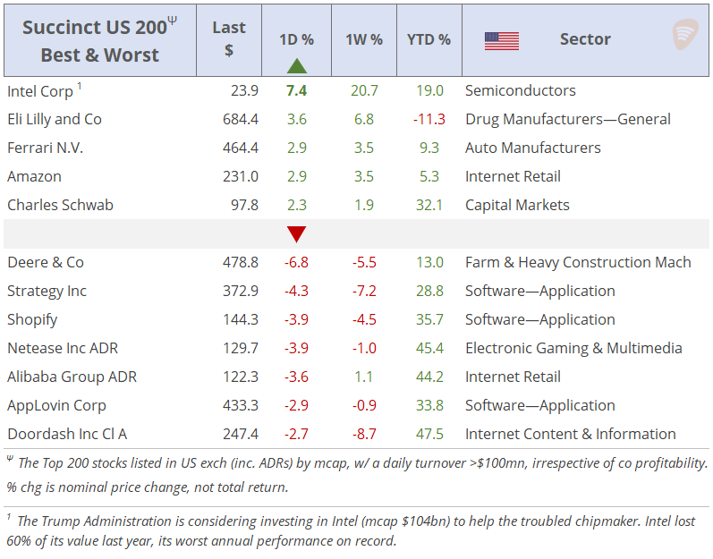 Thu 14 Aug: Market DataTables & ChartsU.S. Markets DailyAug 14, 2025ShareSubscribeCopyright © 2025 Succinct.