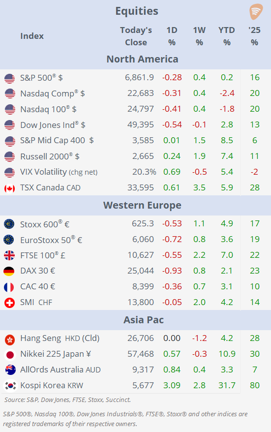 Thu 19 Feb: Market DataTables & Charts (Equities, FX, Rates, Commodities)US Markets DailyFeb 19, 2026SharePreviousNext