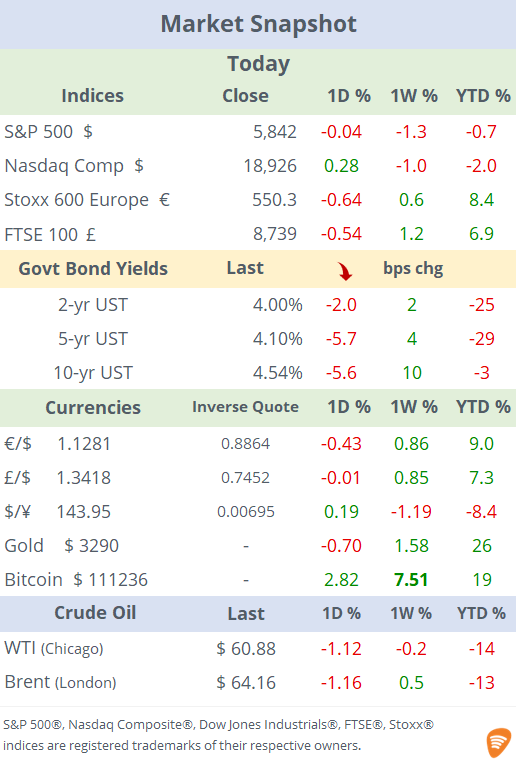 The $ recovered modestly, mainly against the € and the Aussie dollar and is now 8% down for the year. Bitcoin reached an all-time high of more than $111k, accumulating a 19% rally in 2025 after the Senate voted to advance a bill directed at regulating stablecoins.