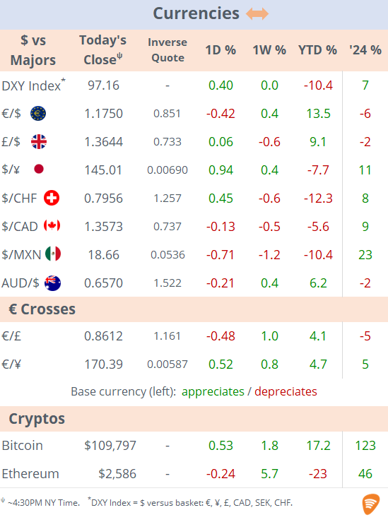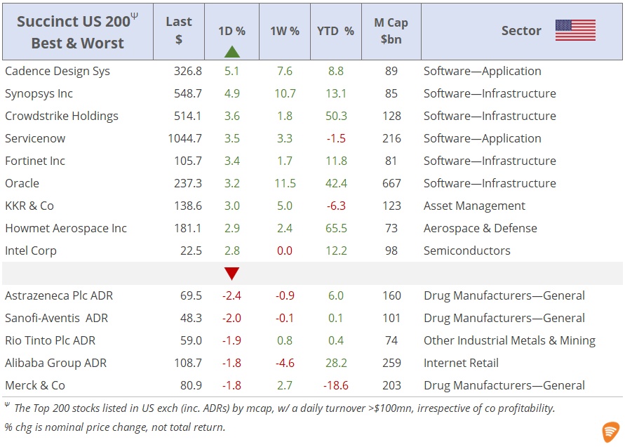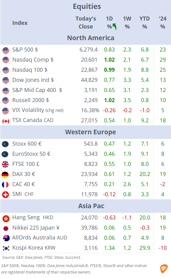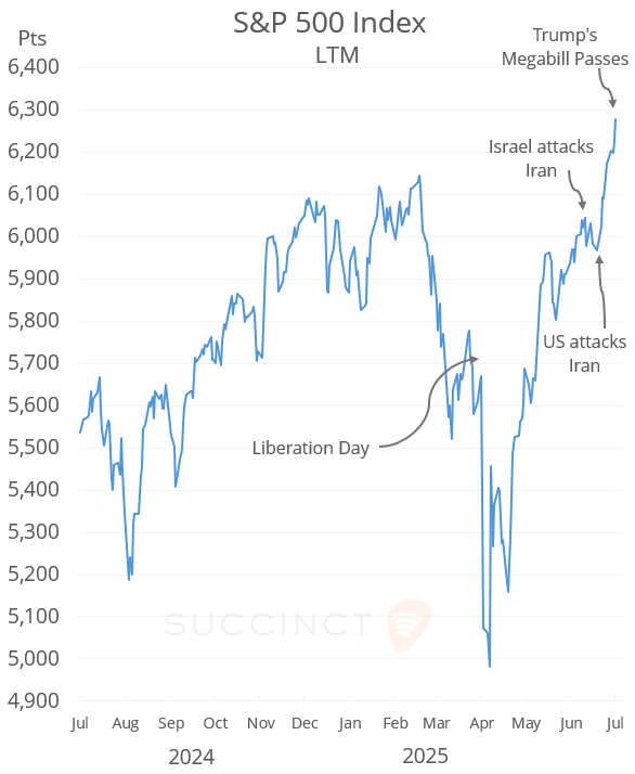 Thu 3 Jul: Market DataTables & ChartsU.S. Markets DailyJul 03, 2025ShareCopyright © 2025 Succinct.S&P 500®, Nasdaq 100®, Dow Jones Industrials®, FTSE®, Stoxx® and other indices are registered trademarks of their respective owners.