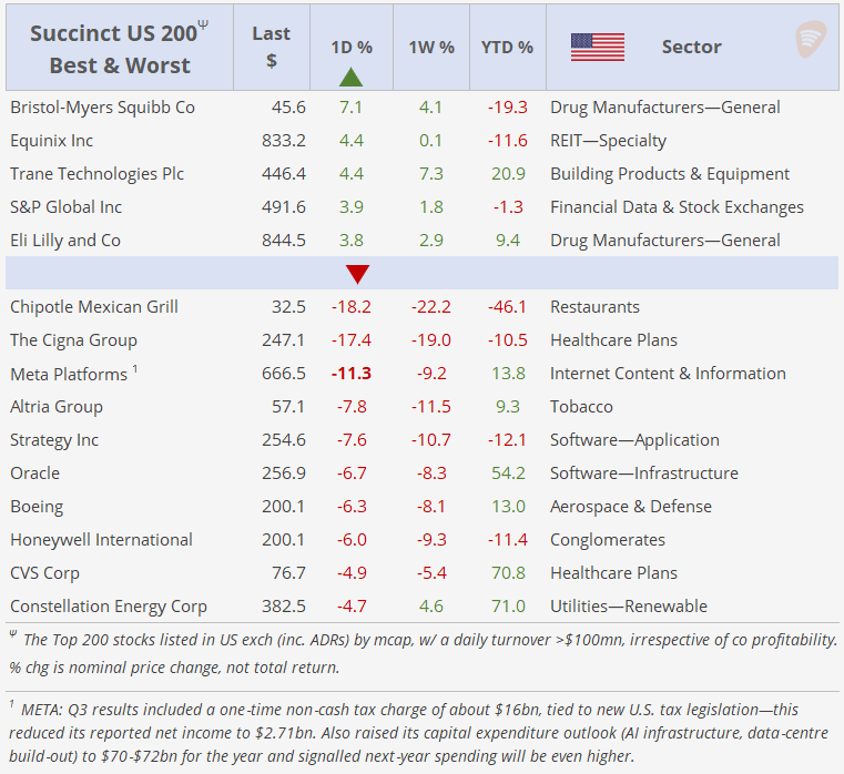 Thu 30 Oct: Market DataTables & ChartsUS Markets DailyOct 30, 2025ShareShareCopyright © 2025 Succinct.PreviousNext