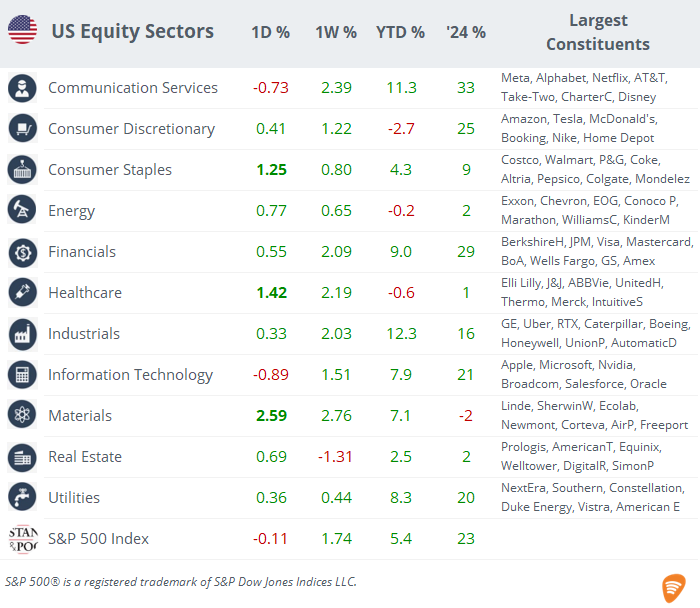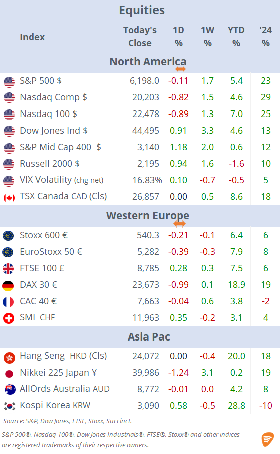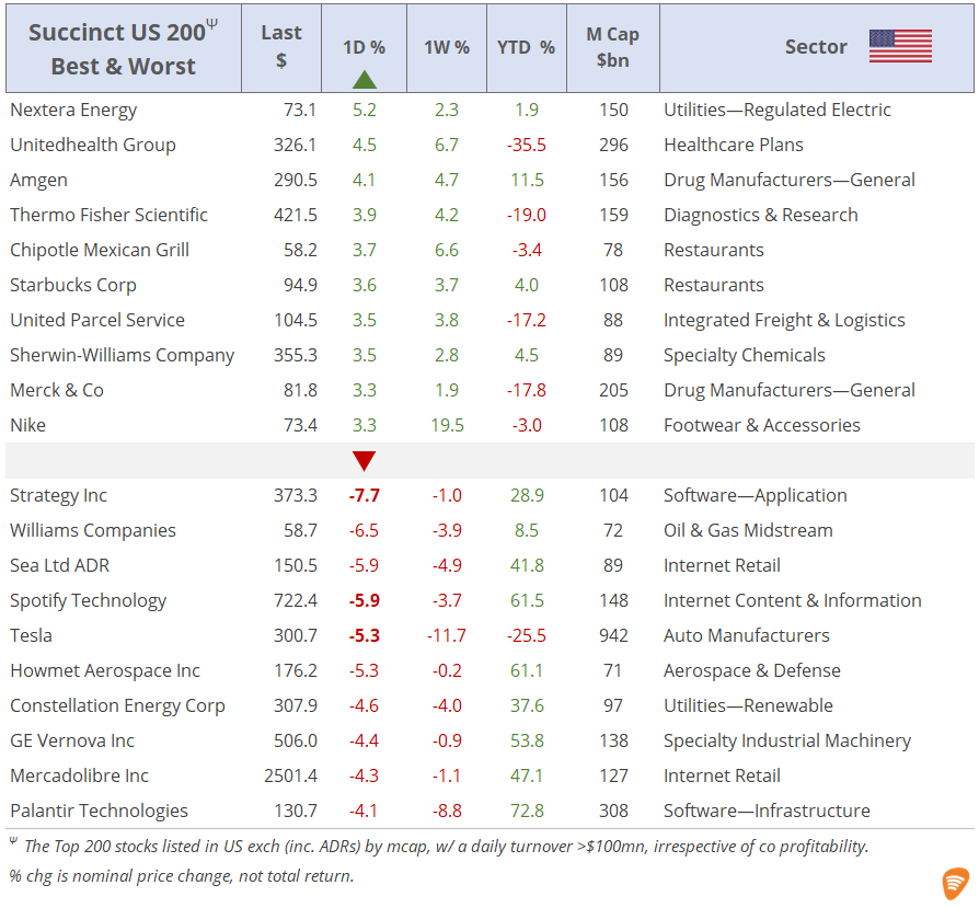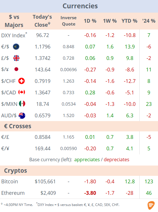 Tue 1 Jul: Market DataTables & ChartsU.S. Markets DailyJul 01, 2025ShareCopyright © 2025 Succinct.S&P 500®, Nasdaq 100®, Dow Jones Industrials®, FTSE®, Stoxx® and other indices are registered trademarks of their respective owners.