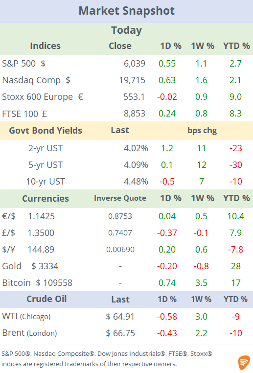Market sentiment was once again dominated by trade talks between the US and China that are being held in London with Commerce Secretary Lutnick saying that conversations are going “really, really well” and that negotiations should finish shortly. This helped stocks rise for a third session with all leading indices finishing higher and tech indicators outperforming.