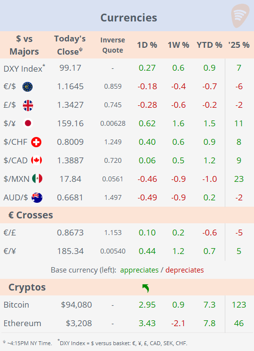Tue 13 Jan: Market Data Tables & Charts (Equities, FX, Rates, Commodities)US Markets DailyJan 13, 2026∙ PaidShareContinue reading this post for free, courtesy of US Markets Daily.Claim my free postOr purchase a paid subscription.PreviousNext