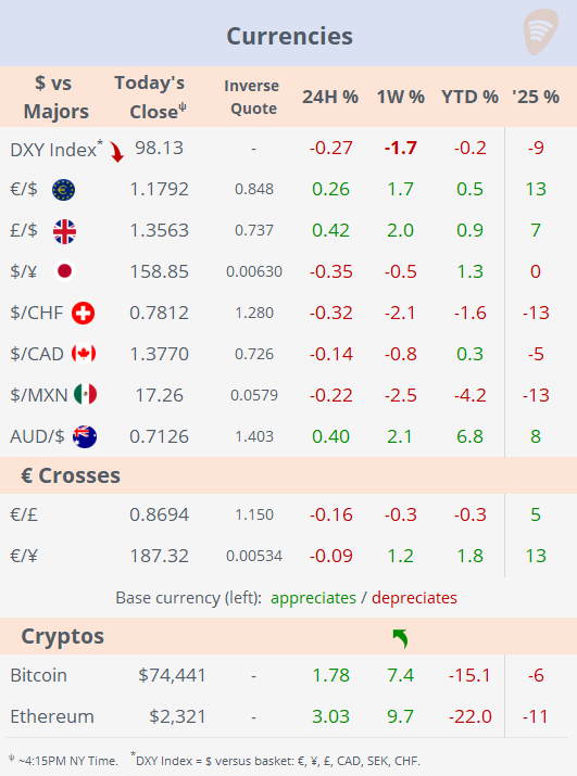 Tue 14 Apr: Market Data Tables & Charts (Equities, FX, Rates, Commodities)US Markets DailyApr 14, 2026ShareSubscribeShare US Markets DailyCopyright © 2026 Succinct.PreviousNext