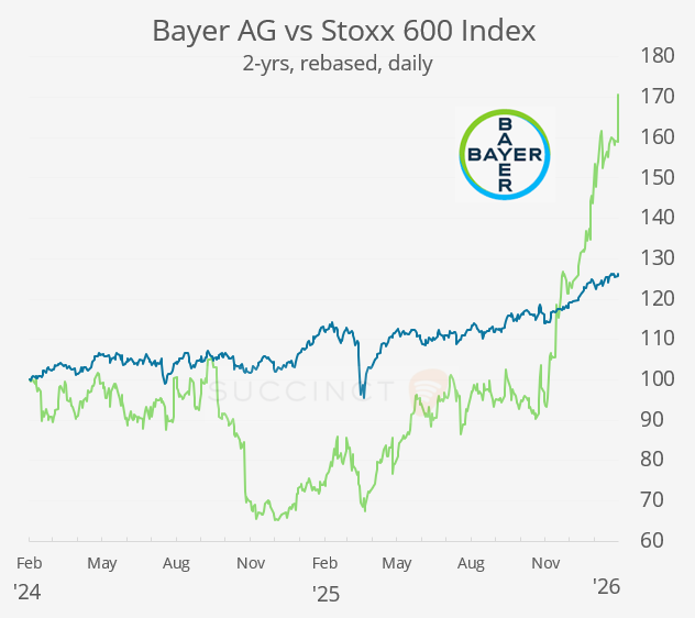 In business news, Germany’s Bayer AG (mcap €48bn) said it will pay a proposed $7.2bn settlement to resolve current and future US cancer lawsuits over its Roundup weedkiller (originally part of its 2018 acquisition of Monsanto), to contain prolonged litigation risk. Bayer shares jumped 7% to a ~3-year high on the announcement, reflecting reduced legal uncertainty.