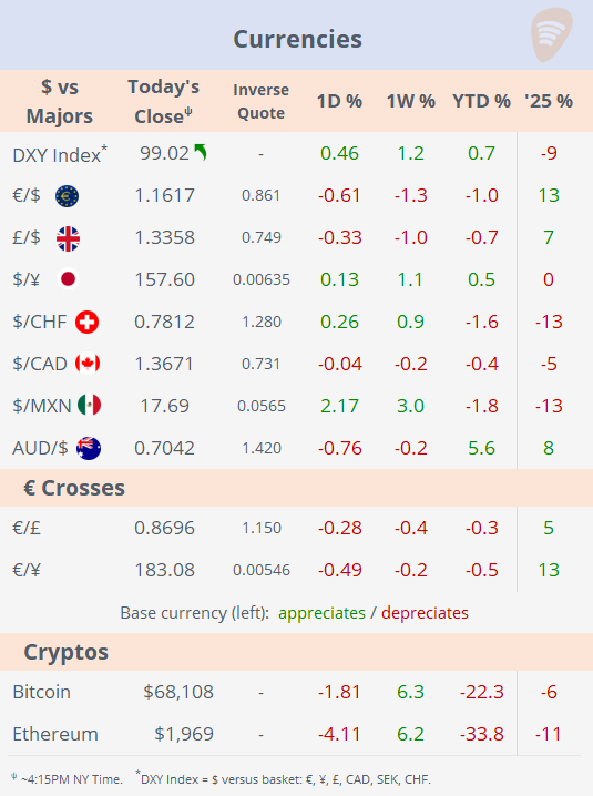 Tue 3 Mar: Market Data🔒Tables & Charts (Equities, FX, Rates, Commodities)US Markets DailyMar 03, 2026∙ PaidShareSubscribeContinue reading this post for free, courtesy of US Markets Daily.Claim my free postOr purchase a paid subscription.PreviousNext