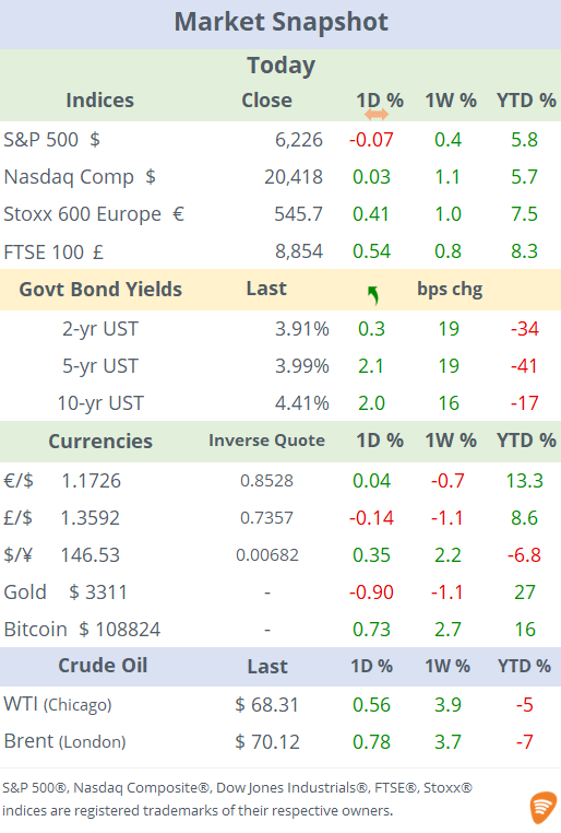 In US stocks, the renewable energy sector fell sharply after the President issued an executive order calling for tighter application of the eligibility rules for clean-energy tax credits. First Solar (mcap $17bn) dropped 6.5%, giant NextEra (mcap $149bn) lost 3% and Sunrun (mcap $2.2bn) declined 11.4%.