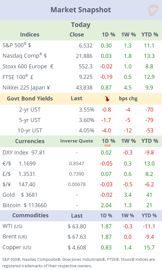 Regarding central bank updates, a judge ruled late Tuesday that Fed Governor Lisa Cook, whom Trump has sought to dismiss, can remain at the Fed for now and will be able to vote in next week’s policy meeting.