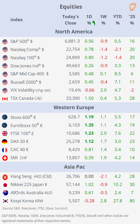 Wed 18 Feb: Market DataTables & Charts (Equities, FX, Rates, Commodities)US Markets DailyFeb 18, 2026SharePreviousNext