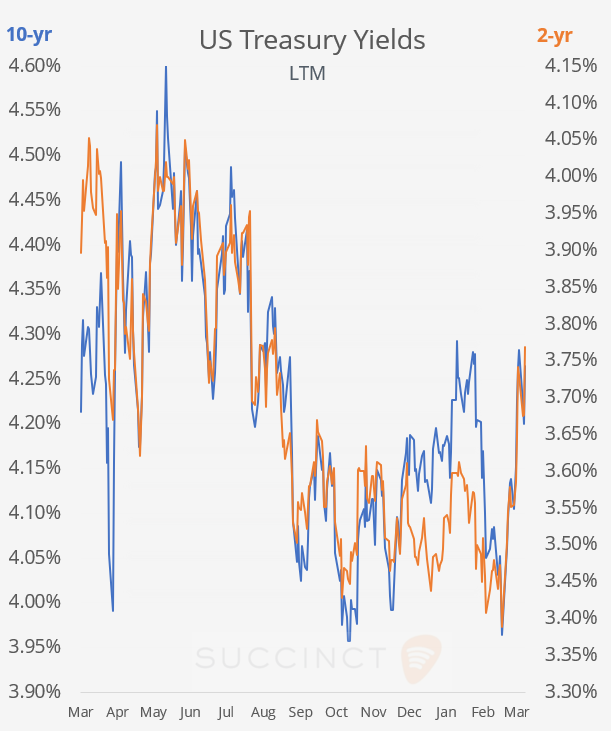 Asset prices reflected this shift decisively: equities sold off into the close, Treasury yields jumped sharply (2-year at ~3.77%, highest since August), and the $ index moved back above 100. Higher yields and tighter financial conditions weighed broadly, with Bitcoin falling over 5% and gold retreating, while copper dropped more than 4% to multi-month lows amid weaker Chinese demand, rising inventories, and macro headwinds.