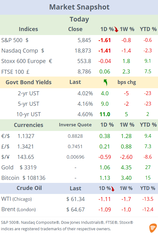 US equities fell sharply on Wednesday with the S&P 500 down 1.6%, the Dow Jones losing nearly 2% and the small-cap Russell 2000 plunging 2.8%. The VIX volatility index added almost 3 percentage points to 20.8%, the highest in 10 days. The DXY $ index fell below 100 points as the greenback lost ground against all major currencies. Gold and Bitcoin gained ~1% today.