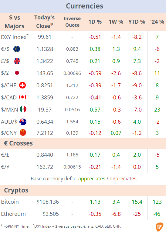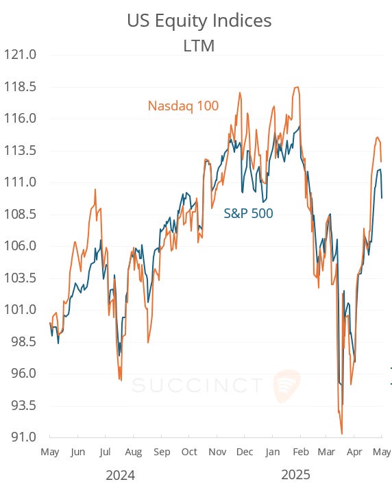 Wed 21 May: Market Data Tables & ChartsU.S. Markets DailyMay 21, 2025Share“Click on the image for full—screen view”Copyright © 2025 Succinct.S&P 500®, Nasdaq 100®, Dow Jones Industrials®, FTSE®, Stoxx® and other indices are registered trademarks of their respective owners.