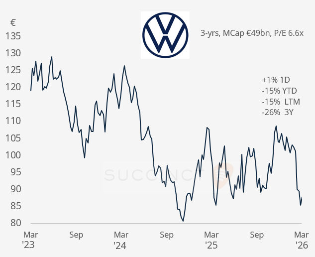 Business news: → Volkswagen (mcap €45bn) is in talks with Israel’s state-owned Rafael Advanced Defense Systems to repurpose a German plant for Iron Dome components, highlighting a potential shift from autos to defence manufacturing amid weak car demand.