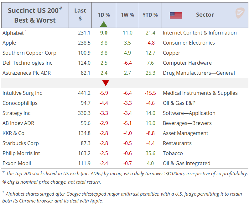Wed 3 Sep: Market DataTables & ChartsU.S. Markets DailySep 03, 2025ShareSubscribeCopyright © 2025 Succinct.
