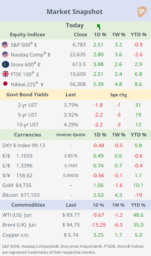 However, cracks began to emerge into the close. Reports of ceasefire violations and continued hostilities introduced fresh uncertainty, with the US preparing direct talks led by Vice President Vance. Oil prices rebounded ~2% after the close following the historic drop, highlighting how fragile sentiment remains. For now, markets are trading on the hope of de-escalation, but with headline risk still firmly in control.