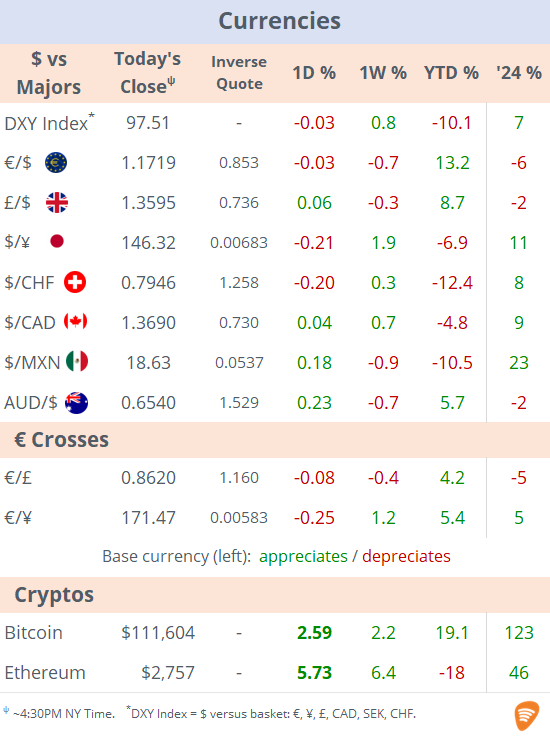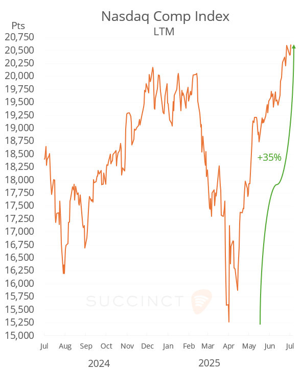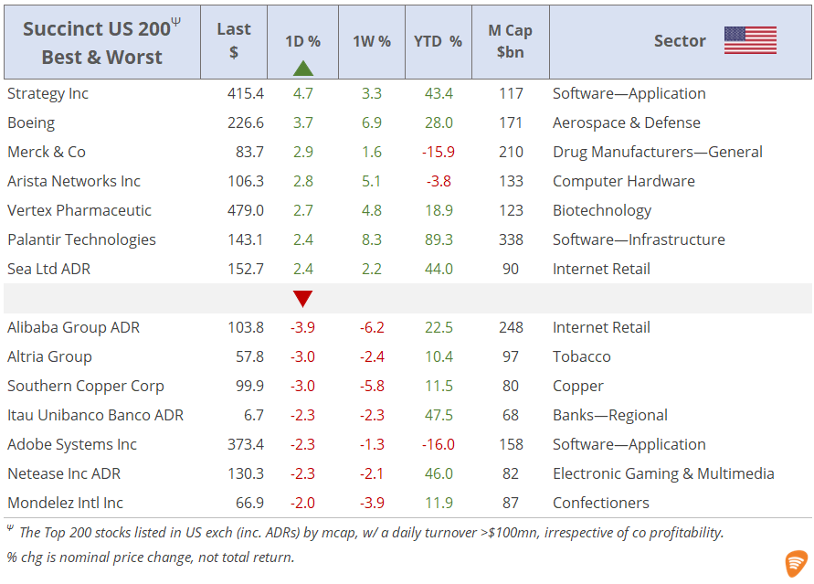 Wed 9 Jul: Market DataTables & ChartsU.S. Markets DailyJul 09, 2025ShareCopyright © 2025 Succinct.S&P 500®, Nasdaq 100®, Dow Jones Industrials®, FTSE®, Stoxx® and other indices are registered trademarks of their respective owners.